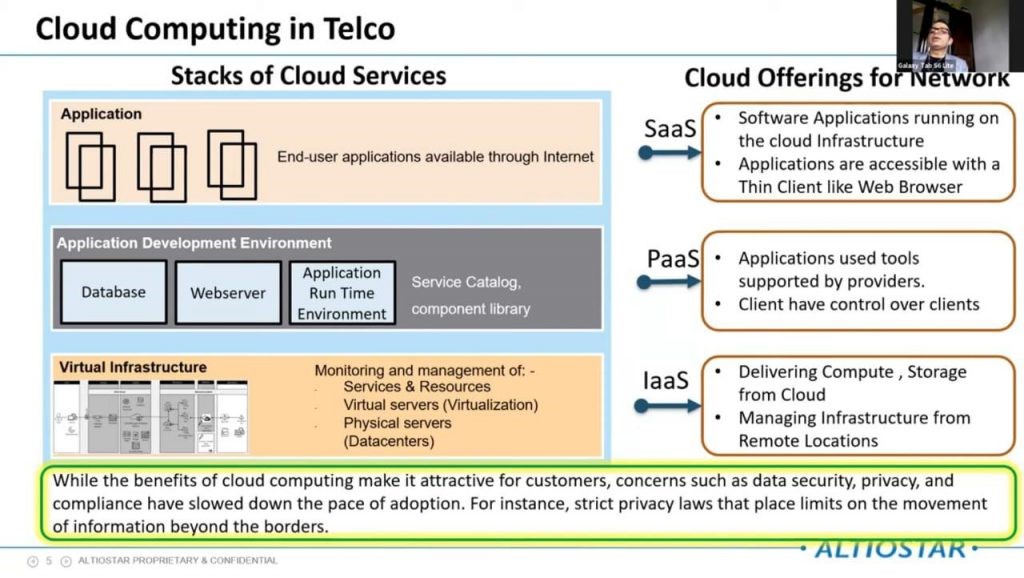 That is the kind of flexibility that Open RAN has brought to the network, now the Cloud computing in the Telco domain on the stack components of the cloud services Altiostar has an application development environment and virtualized infrastructure. Now the virtualized infrastructure is correlated to a Open RAN network it is a combination of storage and servers, in the development platform and the application those remain primarily the virtualized and software applications including AIML those kind functions.