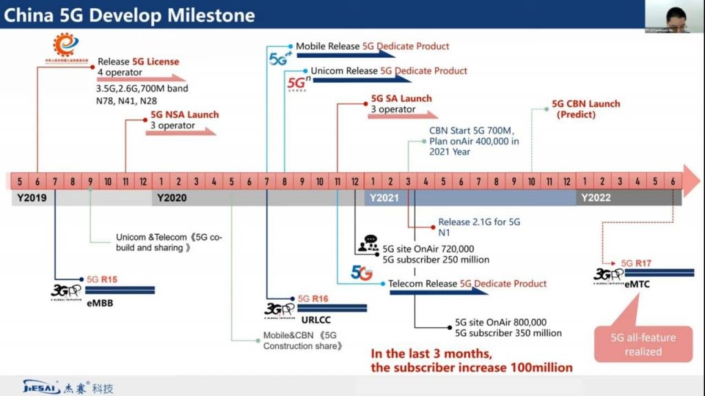 In 3 years ago China already released the license to full up later, and in November 2019 launch the non-standard alarm network. In November 2020 GCI operator already launched standard alarm network and the progress is really fast and steers being number in the word.