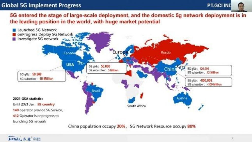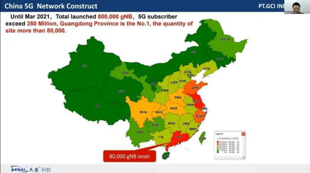 PT.CGI have slogan that is let’s connect the future over 5G, 5G Developer is very fast in China. China is the biggest marketing in the world, from the global map overview China account for 20% of the world population but occupy 80% 5G resource. China network deployment is in the leading position with a huge market. China until March 2021 the total already launched 80.000 gNb onair with the 5G subscriber has exceeded 350 million, for example in Guangdong province is the No.1 the quantity of site more than 80.000.