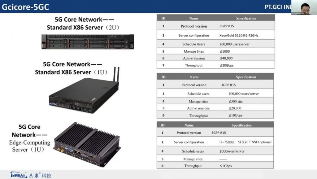 Research on a different split model according to the different customer requirement. From here a introduce our product one by one so first from the core network, we have three type of core network product it will apply to different scenarios depend on the capacity and throughput. Until now the Open RAN is not so popular in the operator this still gets the equipment from the mainstream vendor such as Exam Huawei, so from my opinion the Open RAN is more suitable for the industrial application here also plate 3 type attention chance.